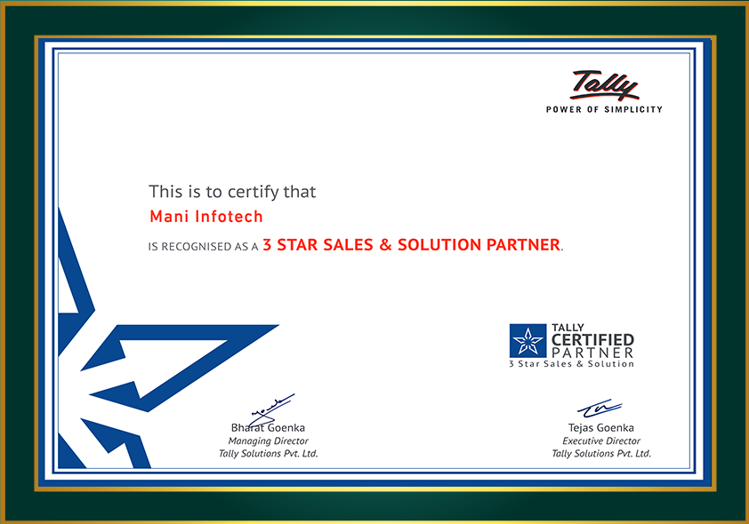 With 22 years of experience in the IT field, including over 9 years as an authorized Tally Partner, Mani Infotech has established itself as one of India’s premier Tally partners. We are proud to serve a diverse community of 3,000 satisfied clients across key sectors, including Manufacturing, FMCG, Healthcare, Education, and Government.